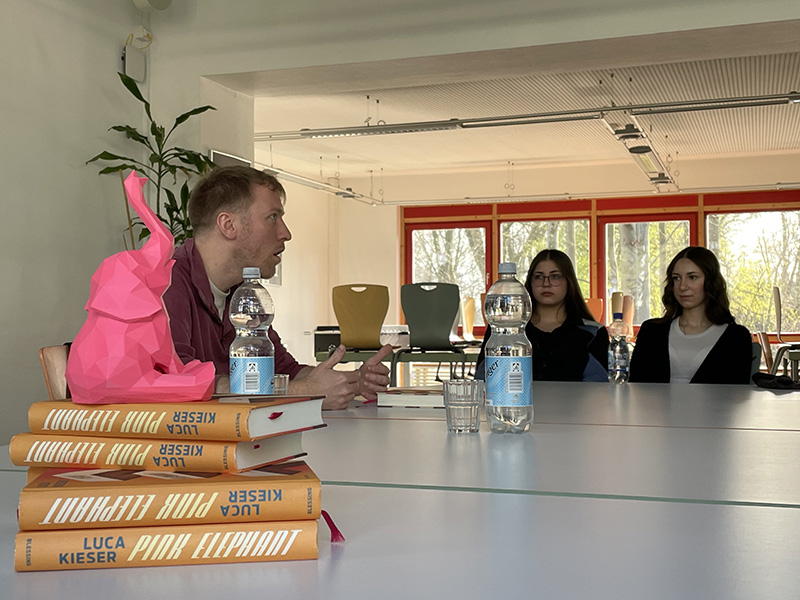 Am 20.03.2025 hatten wir die große Freude, den Autor Luca Kieser an unserer Schule willkommen zu heißen. Er stellte sein Buch „Pink Elephant“ vor und begeisterte die Schülerinnen und Schüler der Deutsch E-Kurse aus den 9. und 10. Jahrgängen mit einer fesselnden Lesung.