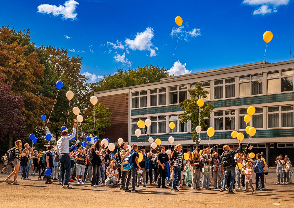 Der krönende Abschluss fand auf dem Schulhof unter strahlend blauem Himmel statt. Alle neuen Schülerinnen und Schüler bekamen die Möglichkeit, ihren größten Wunsch auf eine Karte zu schreiben, um diesen mit einem Ballon in den Himmel steigen zu lassen. Unter tosendem Applaus und freudestrahlenden Gesichtern stiegen die Ballons in den Himmel und da Reporter meistens als erstes von Neuigkeiten erfahren, können wir euch schon verraten, dass die ein oder andere Karte mit Botschaften aus Detmold und dem Sauerland den Weg zu uns zurück gefunden hat…